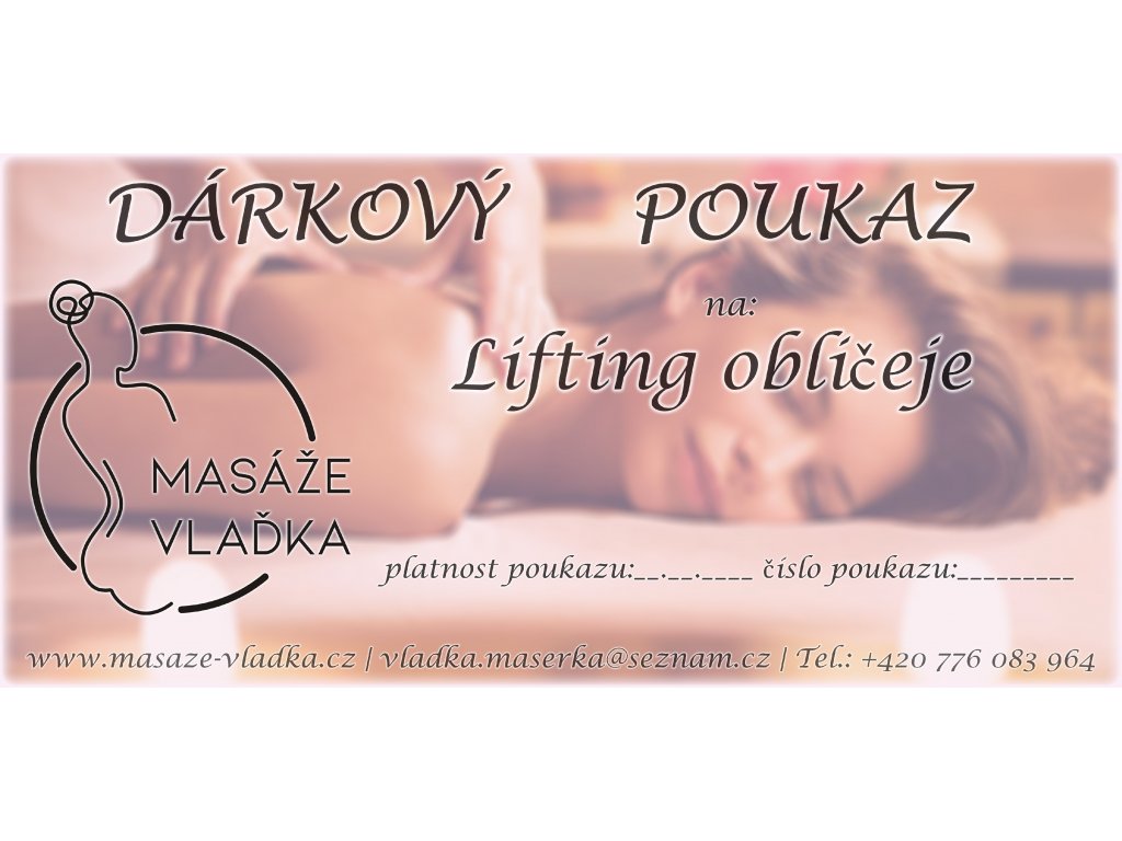Lifting je nová technika masáže obličeje, která přináší příjemné uvolnění, vyhlazuje vrásky a dochází k úbytku podkožního tuku. Prokrvením při masáži povzbudíme krevní oběh, proto se zlepšuje barva kůže a její dýchání, dochází k odplavení odpadních látek, zmírňuje se svalová únava. Lifting je oblíben z důvodu ihned viditelných účinků, protože se zaměřuje na mimické svaly obličeje s hloubkovými a detoxikačními účinky.